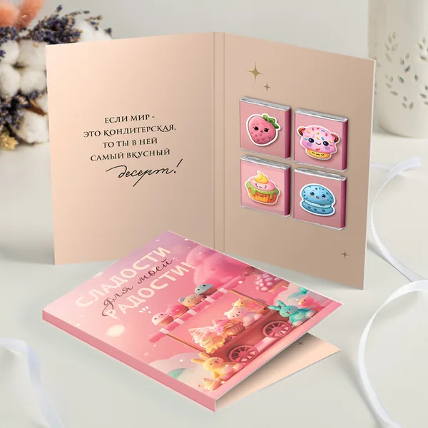 Открытка 4 шоколадки "Сладости для моей радости (розовая)"