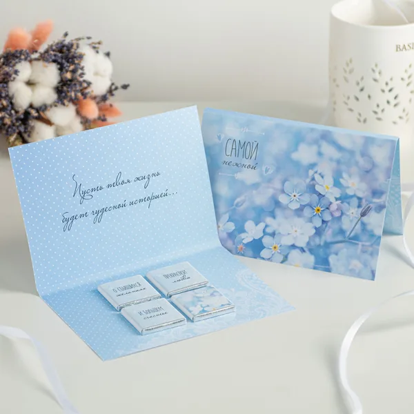 Открытка 4 шоколадки "Самой нежной"