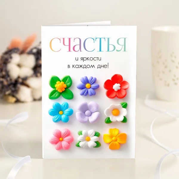 Внутри открытки - 4 шоколадки (вес каждой шоколадки: 5 г., размер: 31 х 31 мм.) Каждая шоколадка упакована в индивидуальную этикетку с пожеланием. Состав шоколада (37% какао): сахар, какао масло, сухое цельное молоко, какао тертое, эмульгатор соевый лецитин, натуральный ароматизатор ваниль.