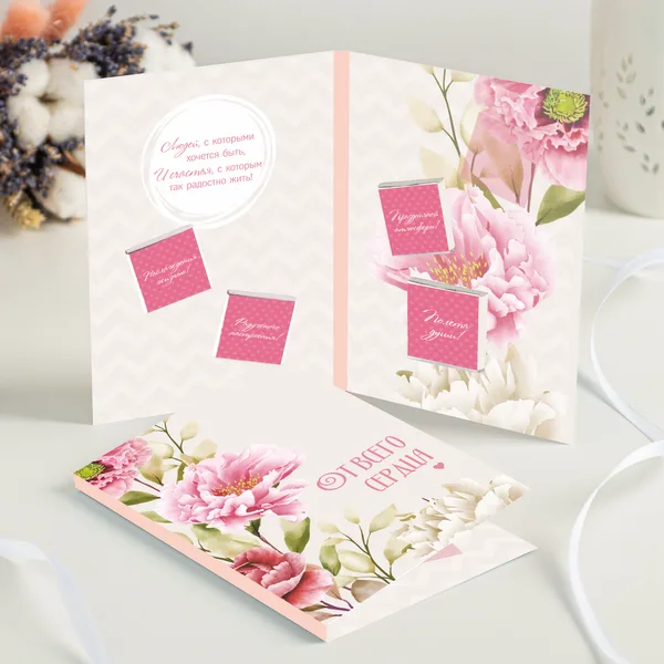 Открытка на 4 шоколадки "От всего сердца"