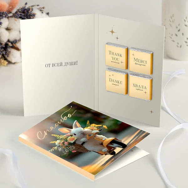 Открытка 4 шоколадки "Спасибо (кролик на жёлтом скутере)"