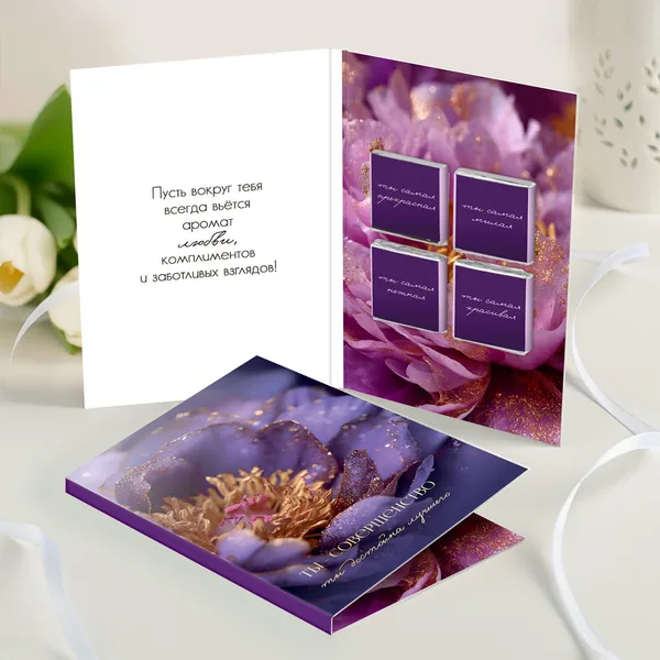 Открытка 4 шоколадки "Ты - совершенство (фиолетовый цветок)"