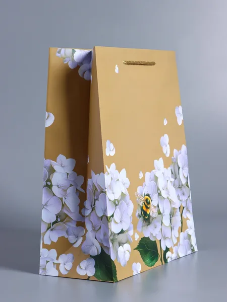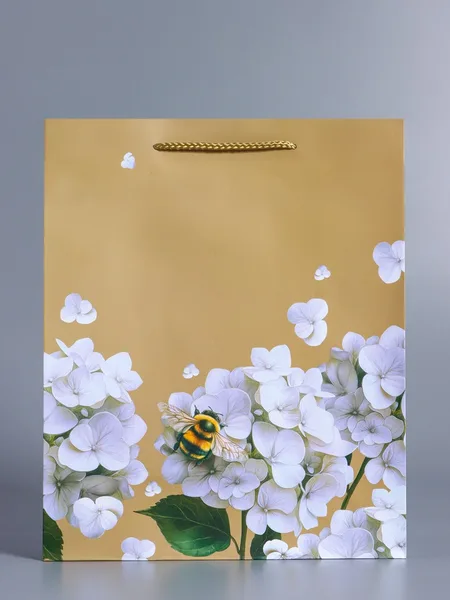 Пакет подарочный ламинированный «Пчёлка на гортензии» (бежевый)